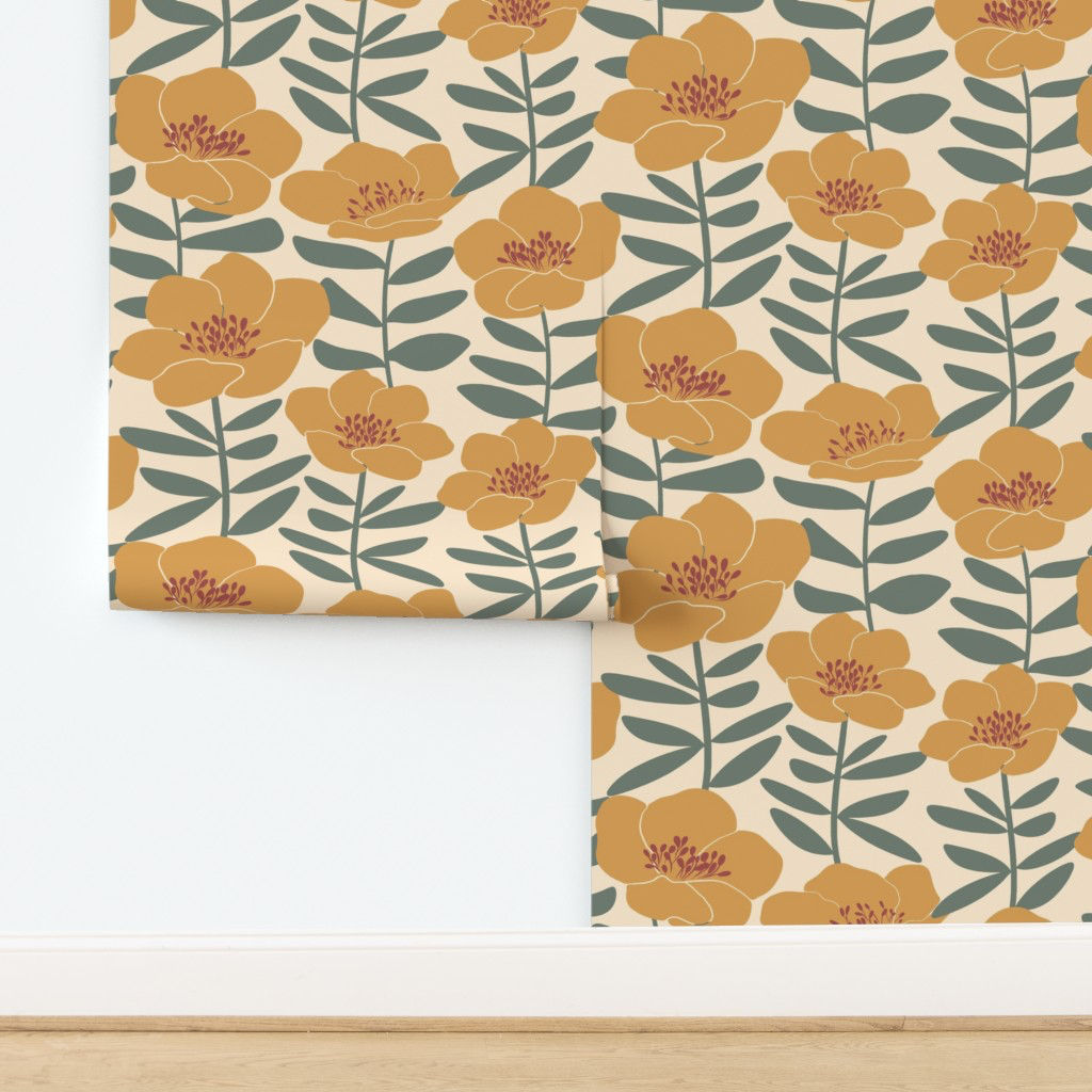 Jumbo Poppy Floral Wallpaper